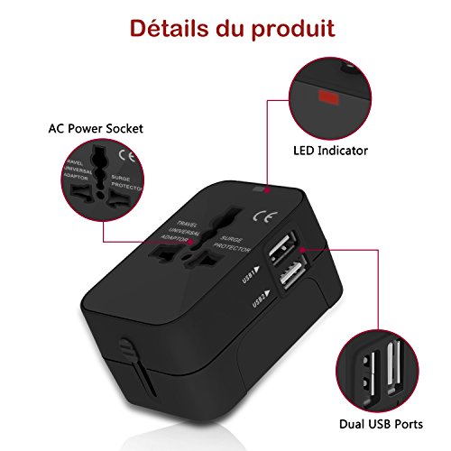 **Adapteur de Voyage Chargeur Convertisseur – SURWELL Voyage Adapteur Chargeur USB Convertisseur avec 2 Ports USB Multifonction pour UK US DE EU CN environ 180 Pays-Noir Prix. ^Vente Adapteur de Voyage Chargeur Convertisseur – SURWELL Voyage Adapteur Chargeur USB Convertisseur avec 2 Ports USB Multifonction pour UK US DE EU CN environ 180 Pays-Noir.